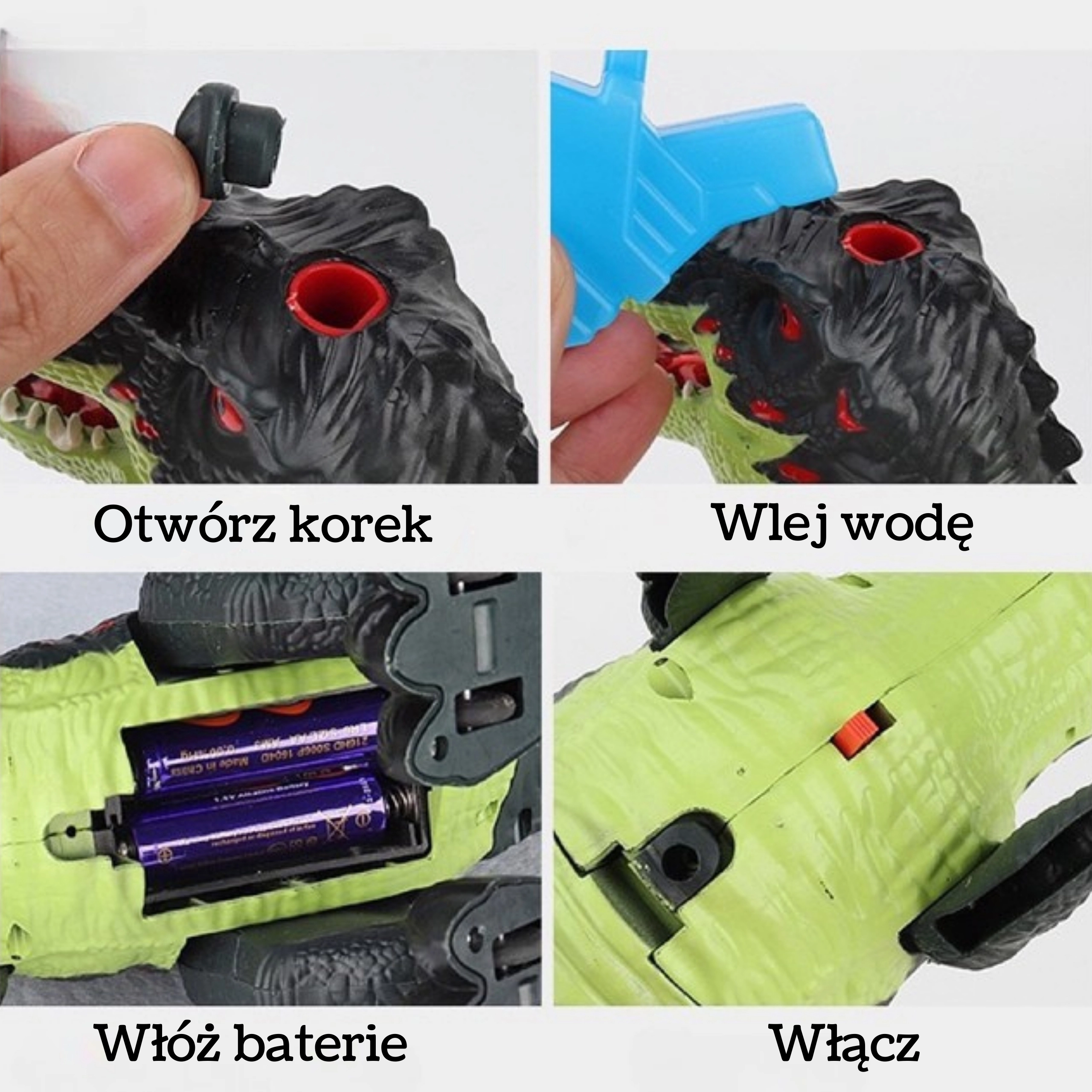 - Bewegende kaak met authentieke T-Rex brul.