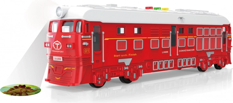 Deze rode trein met vliegwielaandrijving van 33 cm geeft kinderen een realistische rijervaring. Dankzij de licht- en geluidseffecten en de ingebouwde projectie wordt het spel nog boeiender. Bediening is eenvoudig – druk op de knoppen op het dak en geniet van trein- en spoorweggeluiden.