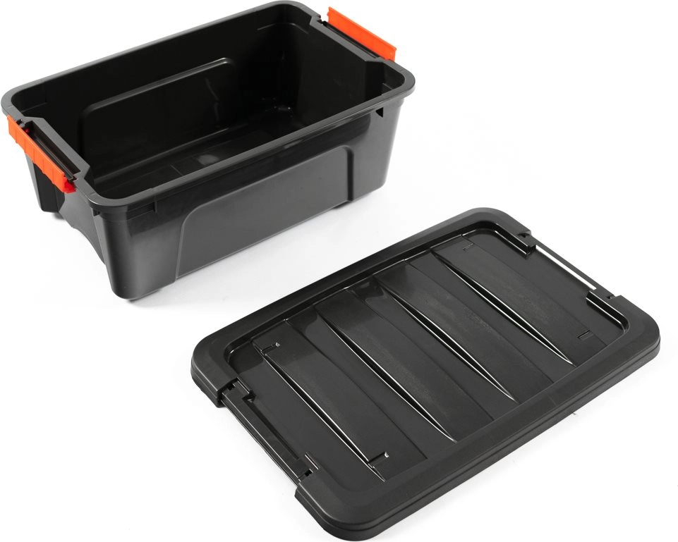 Het stevige deksel beschermt de inhoud tegen stof en maakt stabiel stapelen van meerdere boxen mogelijk.