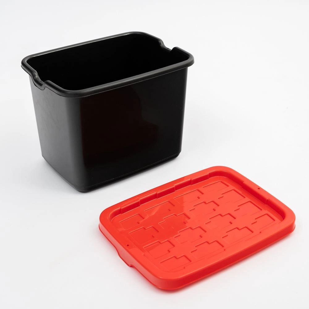 Houd orde gemakkelijk en snel. Deze zwarte opbergbox biedt veelzijdig gebruik in elk huishouden – van kinderkamer en garderobe tot werkplaats. Dankzij het afsluitbare deksel beschermt hij de opgeborgen spullen tegen stof en maakt hij veilig dragen eenvoudiger.