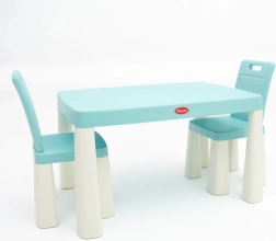 Praktische en veilige kinderset met tafel en twee stoeltjes van duurzaam kunststof voor spelen, tekenen en een tussendoortje, zowel thuis als in de tuin. Biedt een stabiele constructie, eenvoudig onderhoud en een modern design in blauw-wit. De stoeltjes kunnen met of zonder rugleuning worden gebruikt voor comfort en flexibiliteit.