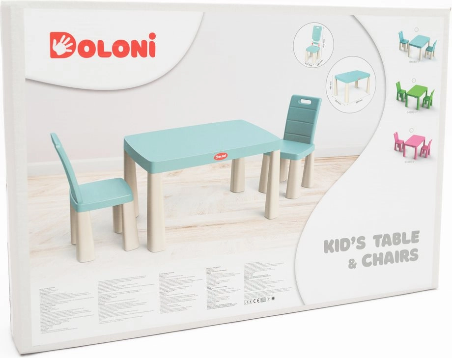Deze stijlvolle DOLONI-set geeft kinderen hun eigen plek om te knutselen, lezen en spelen. Licht en toch stevig kunststof maakt verplaatsen en onderhoud eenvoudig – even afnemen met een vochtige doek is genoeg. Dankzij afgeronde randen en brede poten is de set veilig en stabiel op tapijt en harde vloeren.