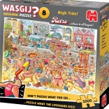 De editie WASGIJ Original 8: Vloed biedt hoogwaardige druk, nauwkeurige stansdelen en een aantrekkelijk motief dat je gespannen houdt tot het laatste stukje. De voltooide puzzel meet ongeveer 68 × 49 cm, een ideaal formaat voor comfortabel puzzelen thuis of met vrienden.
