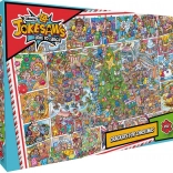 Stap in de wereld van feestelijk vermaak met de puzzel GIBSONS Jokesaws: Crackers for Christmas. Duizend nauwkeurig uitgesneden stukjes vormen een gedetailleerde illustratie vol kerstgrappen, die zowel verzamelaars als gelegenheidsleggers zal bekoren. Dankzij het comfortabele formaat na het leggen van 68 × 49 cm past hij perfect op de meeste tafels en legmatten.