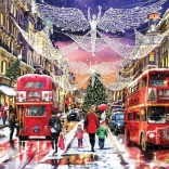Ontdek een gedetailleerd winters tafereel van de iconische Regent Street met kerstversiering. De puzzel van GIBSONS staat bekend om de hoge afwerkingskwaliteit, nauwkeurige stansvormen en diepe kleuren, waardoor het leggen van begin tot eind een plezier is.