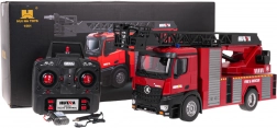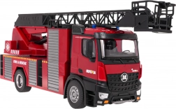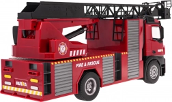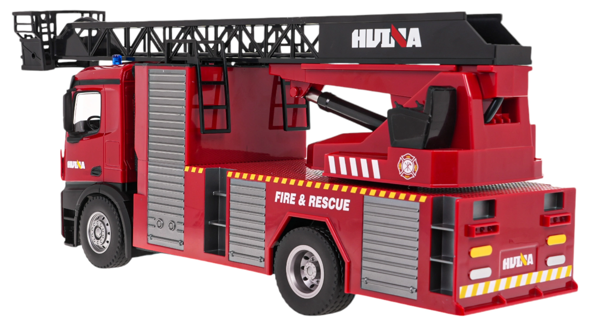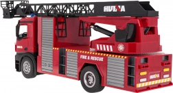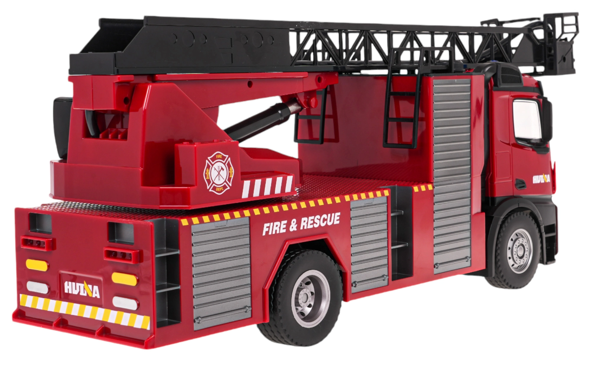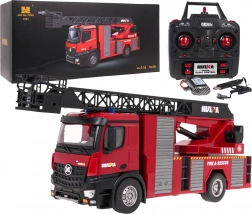 Deze gedetailleerde radiografisch bestuurbare brandweerwagen is gemaakt van kwaliteitskunststof en heeft rubberen wielen met profiel voor betere tractie. Dankzij de 2,4 GHz-frequentie is de besturing soepel en storingsvrij, zodat je gemakkelijk vooruit, achteruit en zijwaarts kunt manoeuvreren. Het platform met arm draait direct via de controller en de uitschuifmast kan worden geheven en neergelaten.