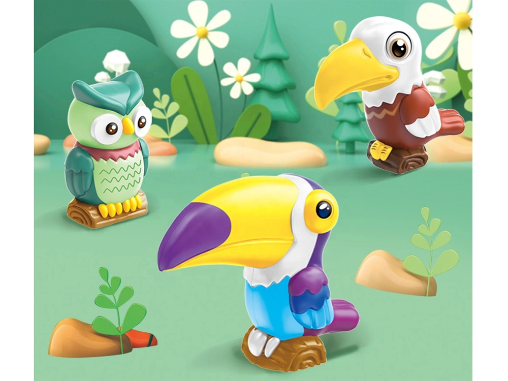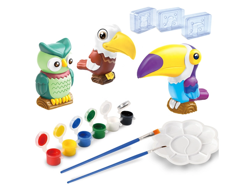 Ontdek een leuke creatieve set voor kinderen waarmee je eenvoudig je eigen 3D-figuurtjes van exotische vogels maakt en decoreert. De doos bevat mallen, gips, verf, penselen en een palet – voeg alleen water toe en begin met creëren. Deze activiteit ontwikkelt de fijne motoriek, creativiteit en geduld, en het resultaat zijn kleurige uilen, een toekan en andere tropische vogels als prachtige kamerdecoratie.