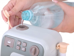 Er kan water in de wasmachine worden gegoten via de bovenste vulopening en na het “wassen” eenvoudig worden afgelaten via een slangetje met handgreep en stop. Kinderen beleven zo de volledige wascyclus alsof het echt is.