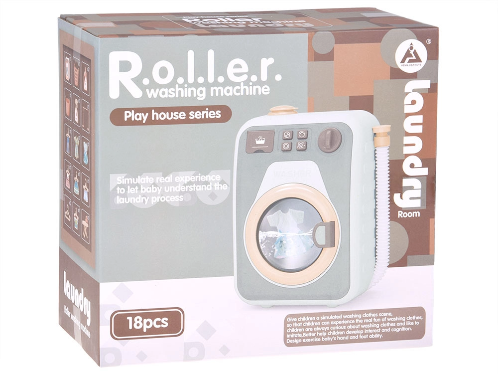 Dankzij de LED-verlichting van de trommel (groen/rood), wasgeluiden en melodieën en het draaien van de trommel is het spel maximaal meeslepend. De rijke accessoireset (strijkijzer, plank, hangers, manden, flesjes “wasmiddel”, jurkjes voor poppen enz.) opent nog meer speelscenario’s – van wassen en ophangen tot strijken en het organiseren van de kledingkast.