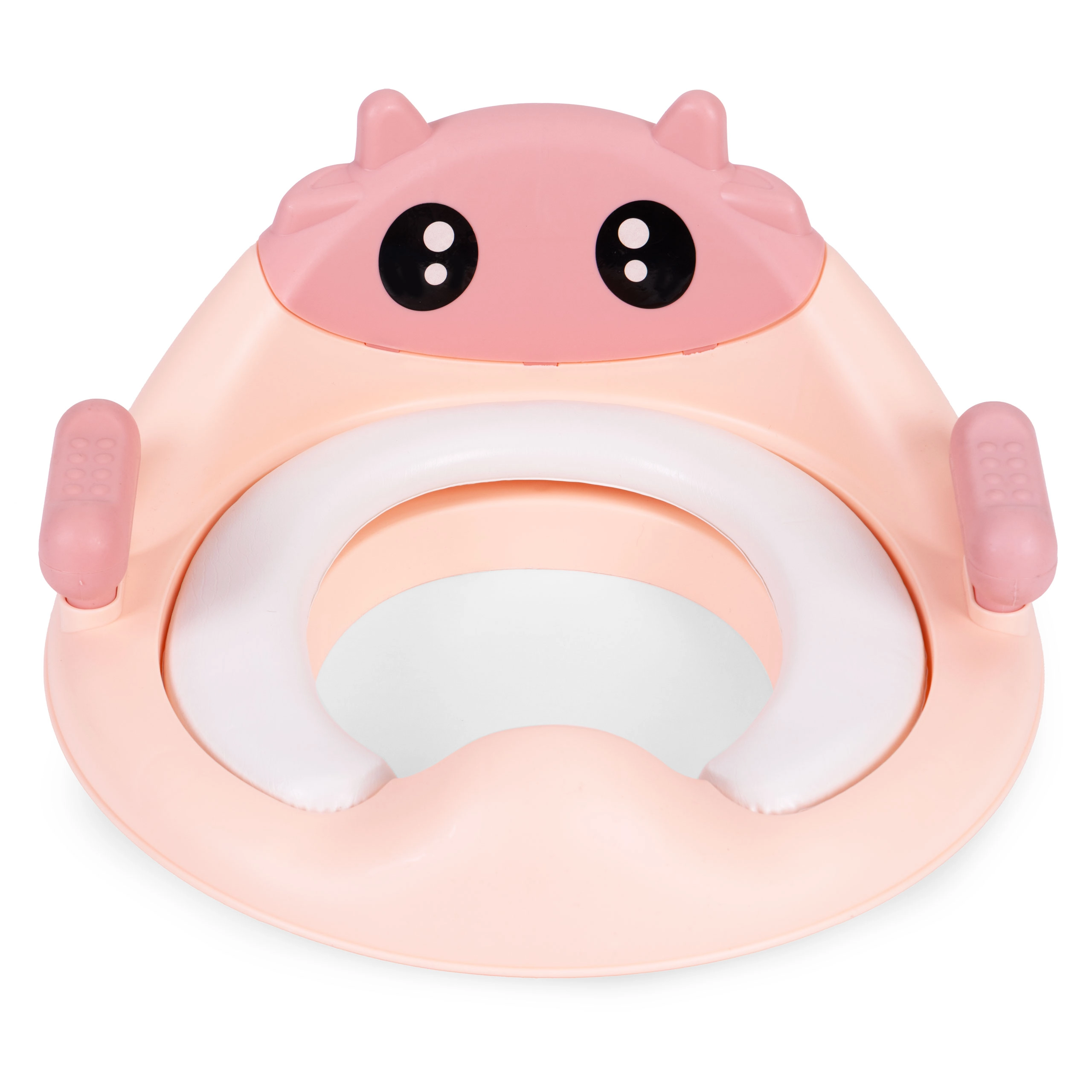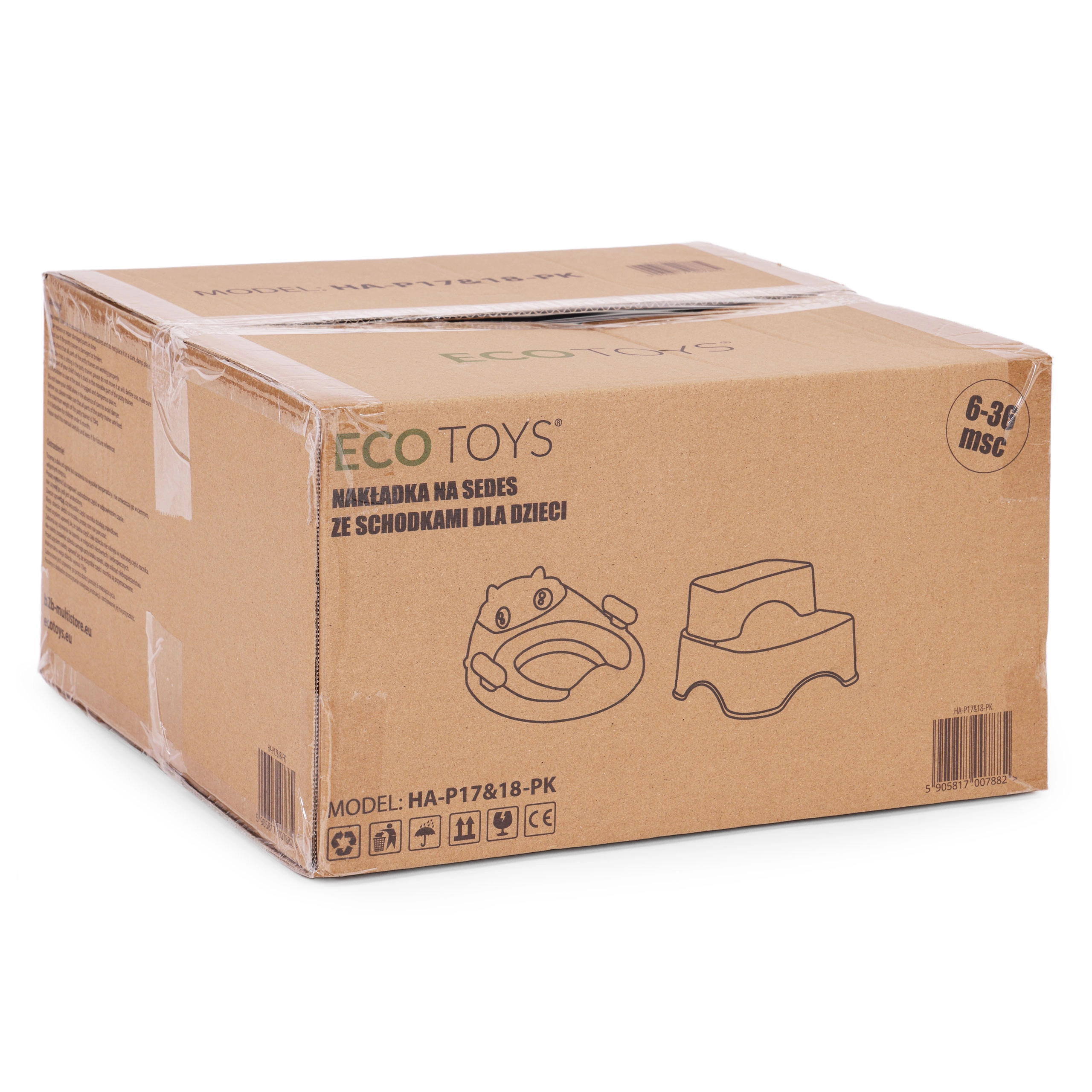 Geef je kind zekerheid en comfort bij de overgang van luiers naar het toilet. De roze ECOTOYS-WC-zitting met zacht “kussentje” zit dankzij de ergonomische vorm en zijhandgrepen stevig op een standaard toilet, verkleint de opening en biedt stabiele steun. De tweeledige trap met antislipafwerking helpt kinderen eenvoudig en veilig omhoog te klimmen.