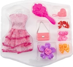 Deze veelzijdige set voor poppen biedt een complete outfit voor elke gelegenheid. Kinderen kunnen jurken, schoenen en haaraccessoires combineren en zo eindeloos veel stijlen creëren. De mix van uitvoeringen zorgt voor verrassingen en plezier bij elk pakket.