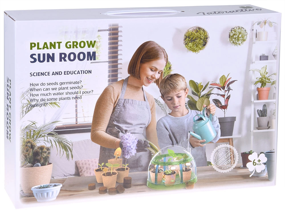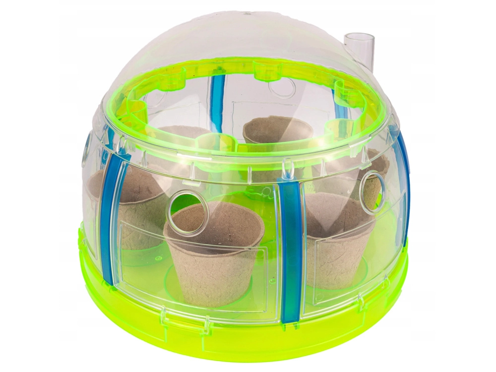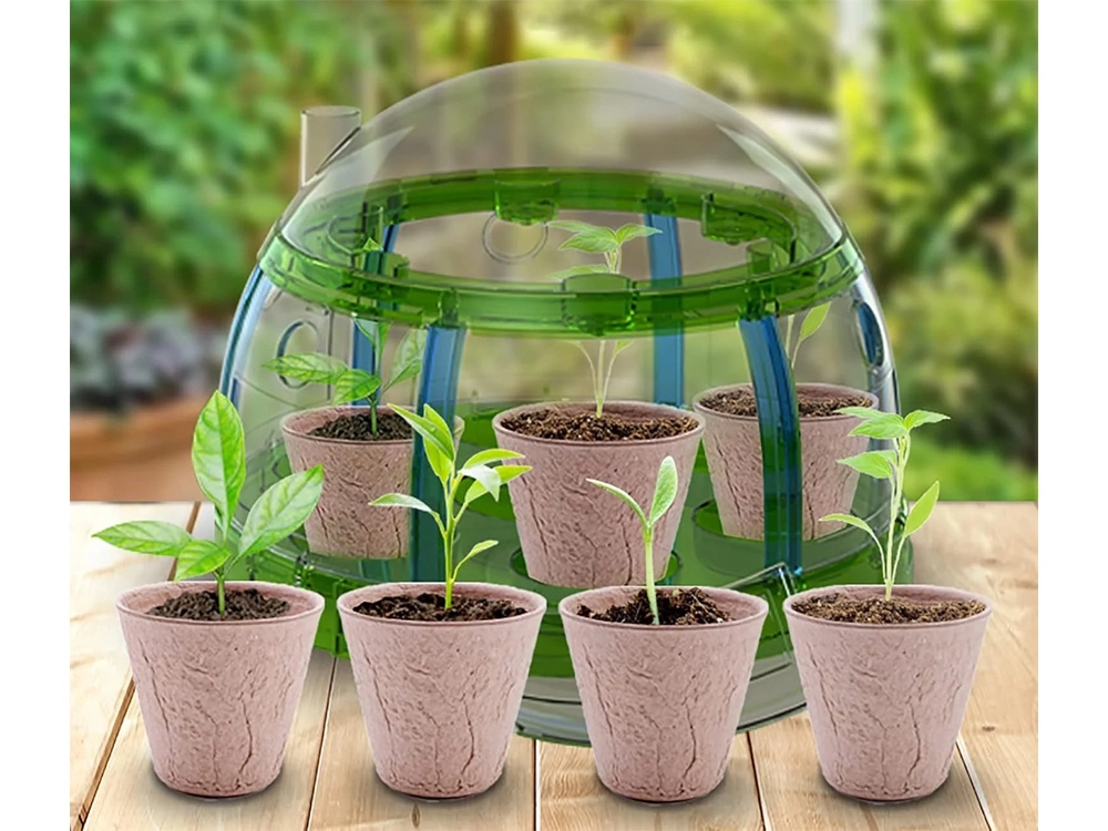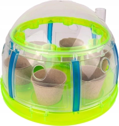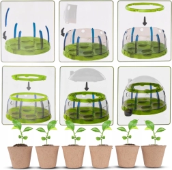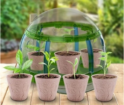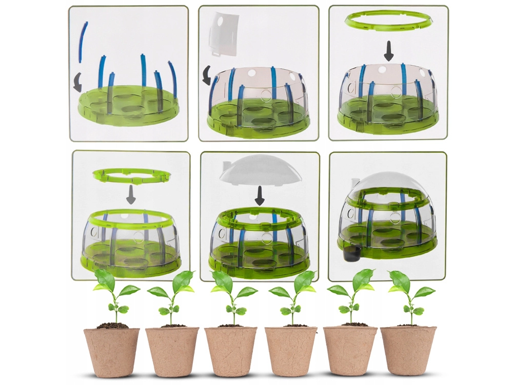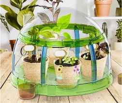 Maak thuis een mini-tuintje en volg de groei van zaad tot volwassen plant. De decoratieve mini-kas met openklapbaar dak en deurtjes bij elk potje biedt ideale omstandigheden voor kiemen. De biologisch afbreekbare potjes kun je direct in de grond uitplanten – milieuvriendelijk en zonder rommel.