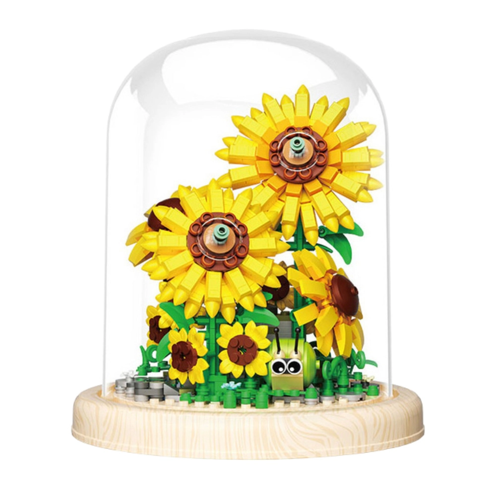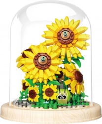 Bouwset zonnebloemen met LED-verlichting in koepel, 633 stukjes