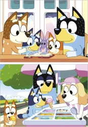 Leuke kinderpuzzel met motieven van BLUEY in een handig koffertje. De verpakking bevat 2 puzzels met hetzelfde formaat en hetzelfde aantal stukjes, ideaal voor jonge kinderen dankzij de grote stukjes voor eenvoudig hanteren. Heldere kleuren en aantrekkelijke motieven trekken meteen de aandacht.