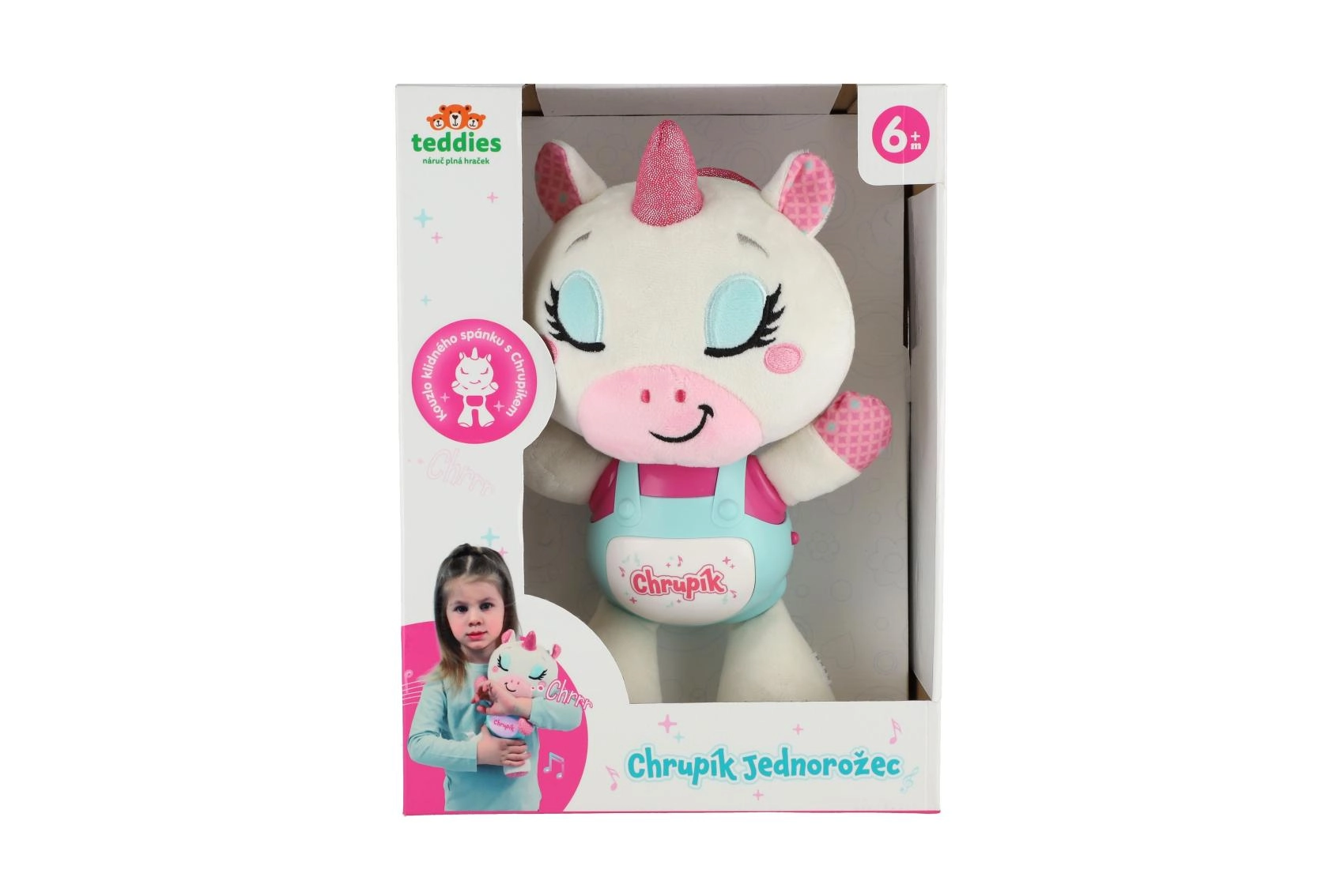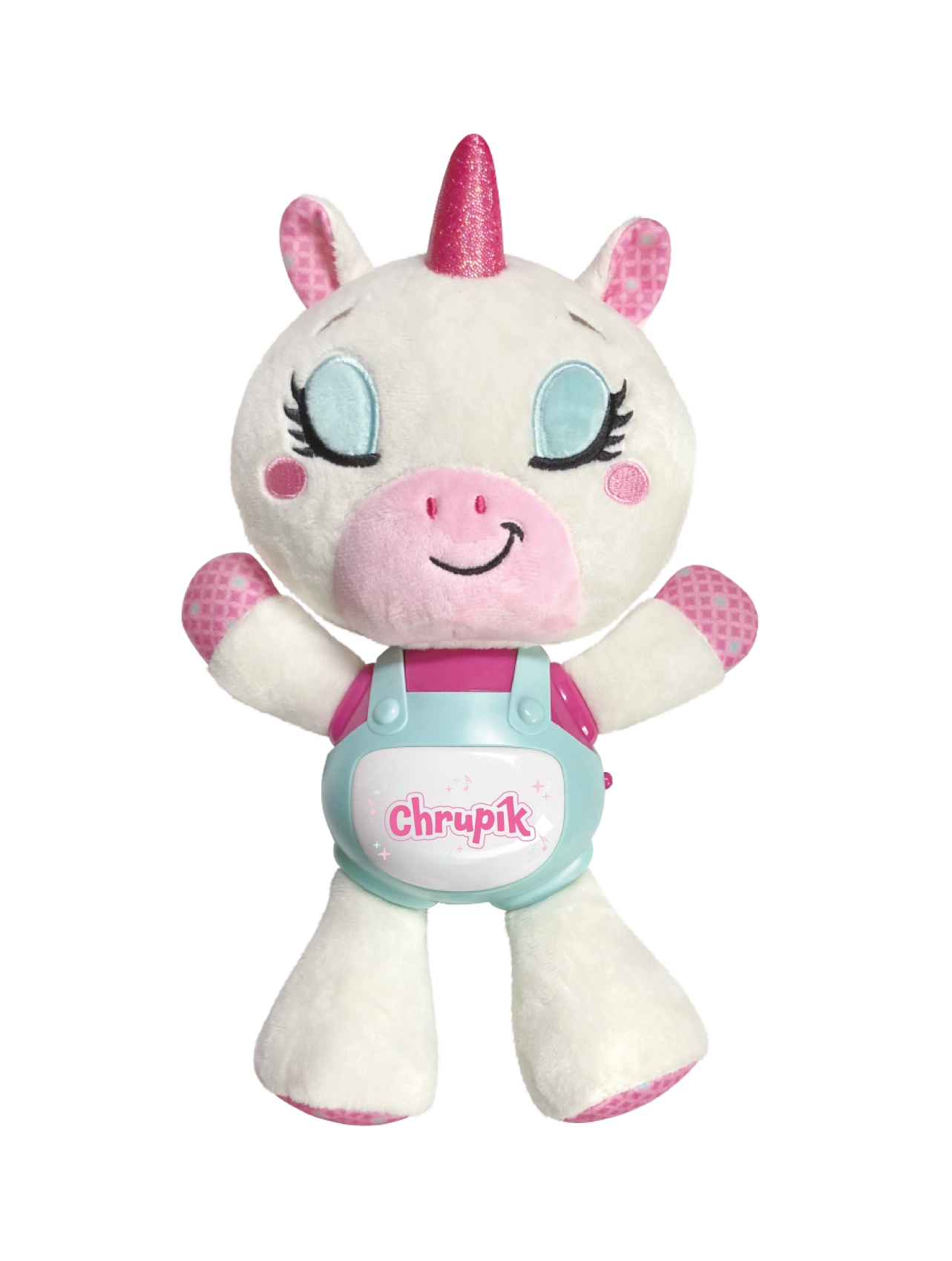 De schattige slaaphulp eenhoorn Chrupík combineert zacht pluche met rustgevend licht en zachte melodieën om kinderen te helpen rustig in slaap te vallen. Dankzij de batterijvoeding is hij ideaal voor in het ledikant, in de kinderwagen en onderweg, en geschikt vanaf 6 maanden.