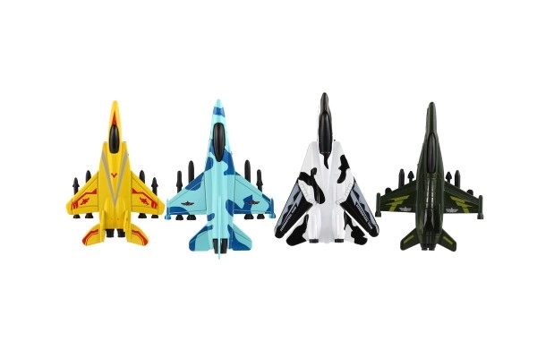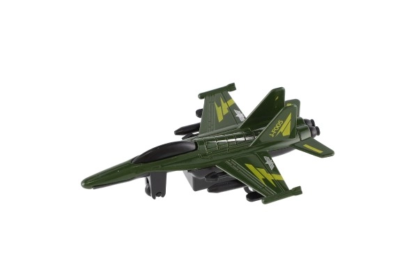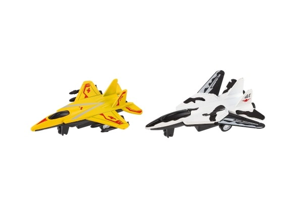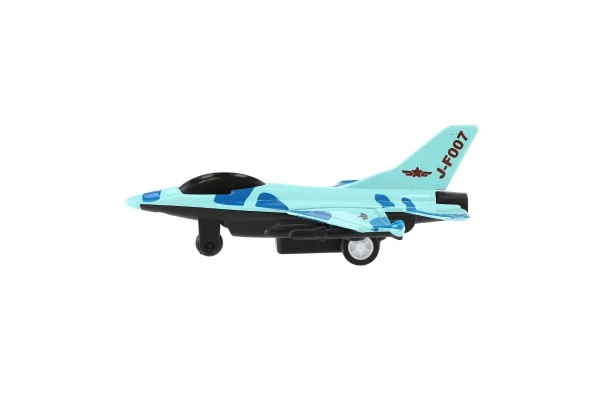 Vliegtuig/jager metaal/kunststof 11 cm met terugtrekmechanisme mix kleuren 13x17x4 cm