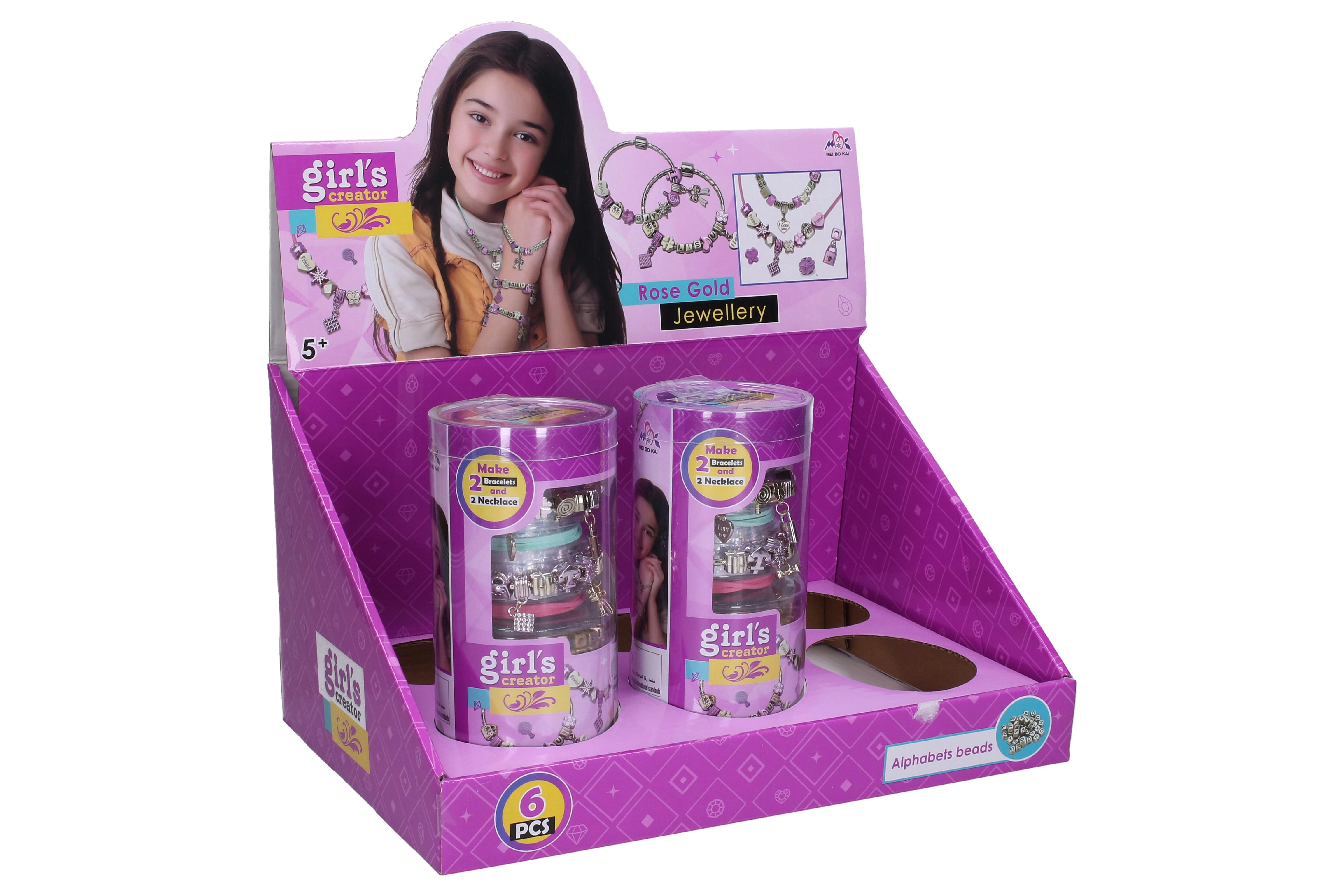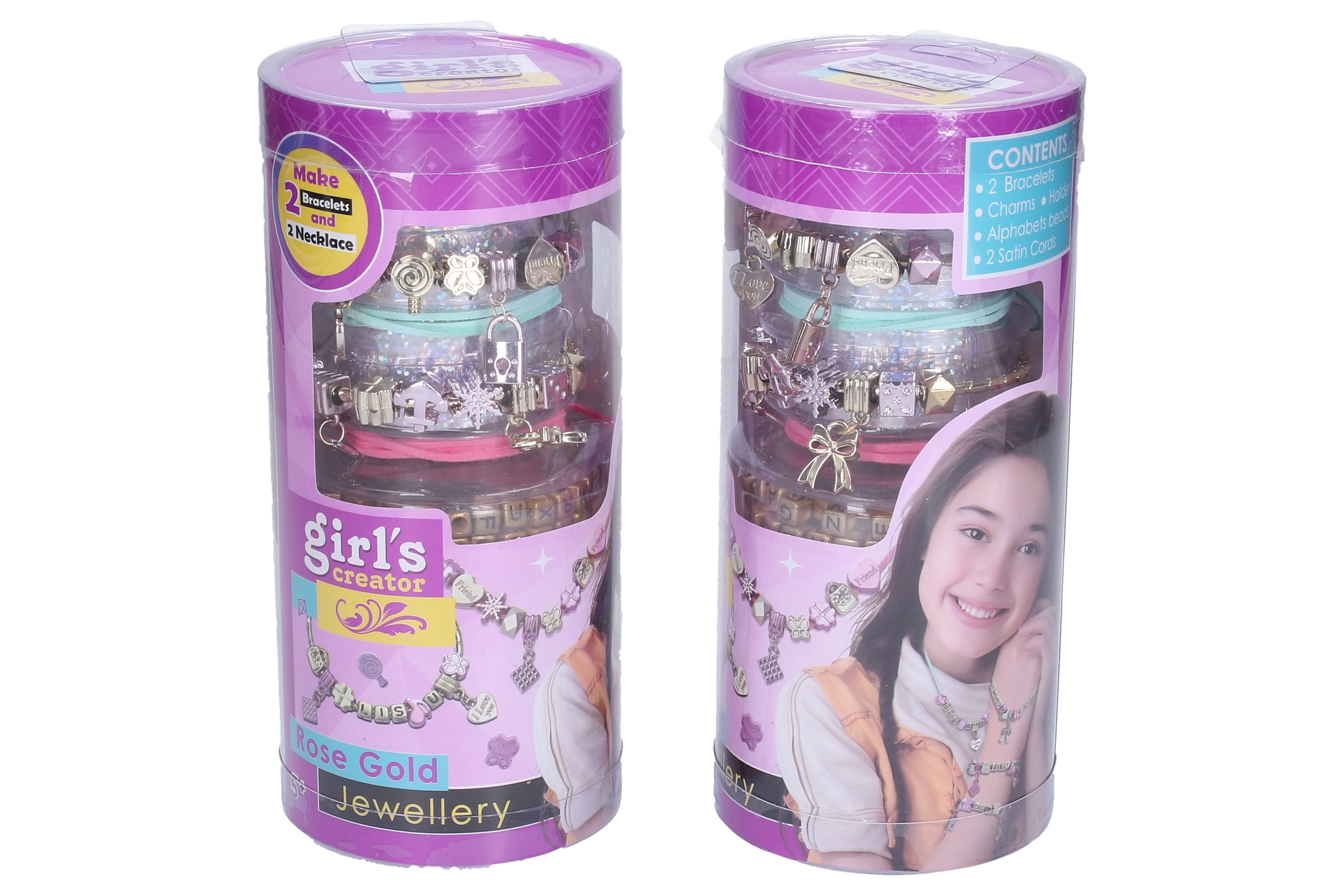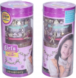 Deze creatieve set zal alle kleine sieradendesigners blij maken. In de verpakking vind je alles wat je nodig hebt om stijlvolle armbanden en kettingen te maken in een elegante roségouden tint – van bedels in de vorm van hartjes, sterretjes en strikjes tot letterkralen voor het maken van namen en boodschappen.