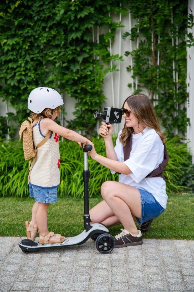 Het praktische inklapmechanisme laat je de step in een handomdraai inklappen en meenemen naar de speeltuin of het park. De 3-traps hoogteverstelling van het stuur (60 / 66 / 72 cm vanaf het deck) zorgt voor comfortabele aanpassing aan de groei van het kind en een ergonomische houding.