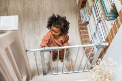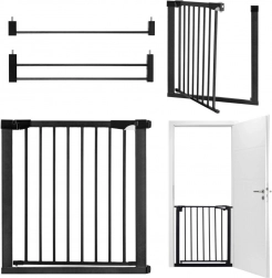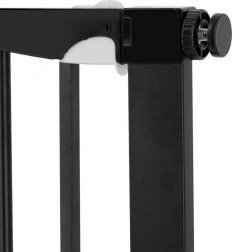 Het dubbele veiligheidssysteem voorkomt dat kinderen het hekje openen. De poort opent in beide richtingen en blijft bij 90° open voor een ongehinderde doorgang.
