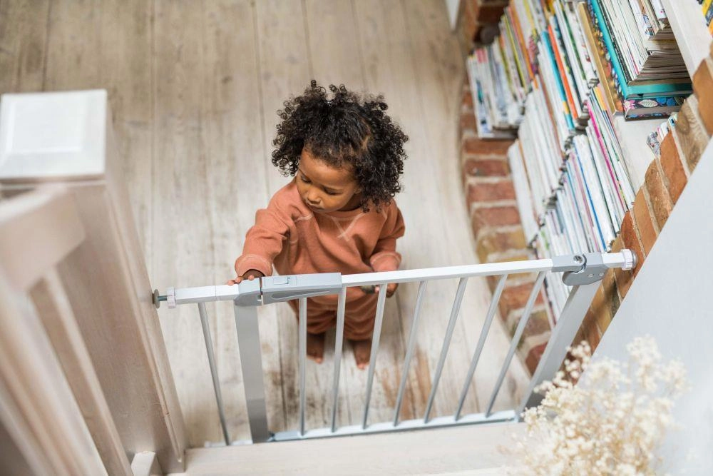 MoMi PAXI Plus is een betrouwbaar metalen hekje, ontworpen om trappen, keukens en andere risicogebieden veilig af te schermen. Dankzij de drukmontage installeer je het snel en zonder schade aan kozijnen of muren. De robuuste constructie met een glad oppervlak zonder scherpe randen zorgt voor veiligheid en dagelijks gebruiksgemak.