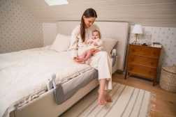 Veiliger slapen zonder uit bed te vallen. Het bedhekje MoMi LEXI PLUS in grijs biedt snelle montage zonder gereedschap, 180° openen voor comfortabel opstaan en luchtig mesh voor betere luchtcirculatie. Dankzij de vergrendeling tegen onbedoeld inklappen en de zachte bekleding is het ideaal voor baby’s en oudere kinderen.