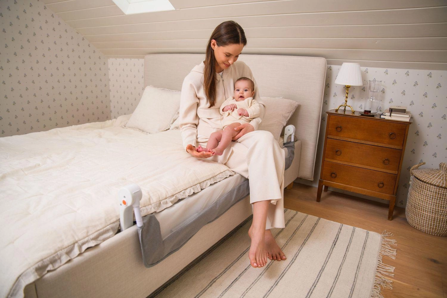 Het hekje installeer je eenvoudig in enkele minuten. Kies voor montage onder de matras met bevestigingsriemen of voor vastschroeven aan het bedframe.
