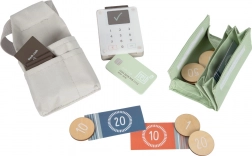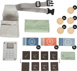 De heuptas met portemonnee, speelgeld en kaartlezer laat kinderen “betalingen” accepteren, bonnetjes uitgeven en sociale vaardigheden oefenen.