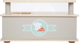 Deze hoogwaardige houten pizzeria van small foot is een geweldige aanvulling op elke kinderkitchen. De oven met draaiknop die klikt tijdens het draaien fungeert tegelijk als voorraadkast en toonbank. Kinderen kunnen pizza bakken, snijden en serveren met de houten schep en dankzij de uitgebreide accessoires spelen ze zowel kok als verkoper.