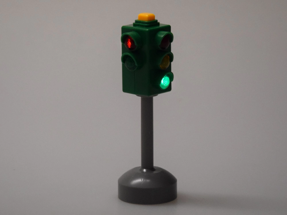 Het verkeerslicht met drie kleuren (rood, geel, groen) en geluid simuleert echt verkeer. Perfect om veilig oversteken en rijden te leren.