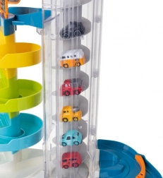 Deze kleurrijke parkeergarage biedt kinderen dynamisch spel met autootjes – til ze met de handmatige of elektrische lift naar de bovenste verdiepingen en kijk hoe ze via de spiraalvormige banen vlot naar beneden racen. Dankzij de vijf niveaus is er volop ruimte om te rijden, te parkeren en eigen verkeerssituaties te creëren.