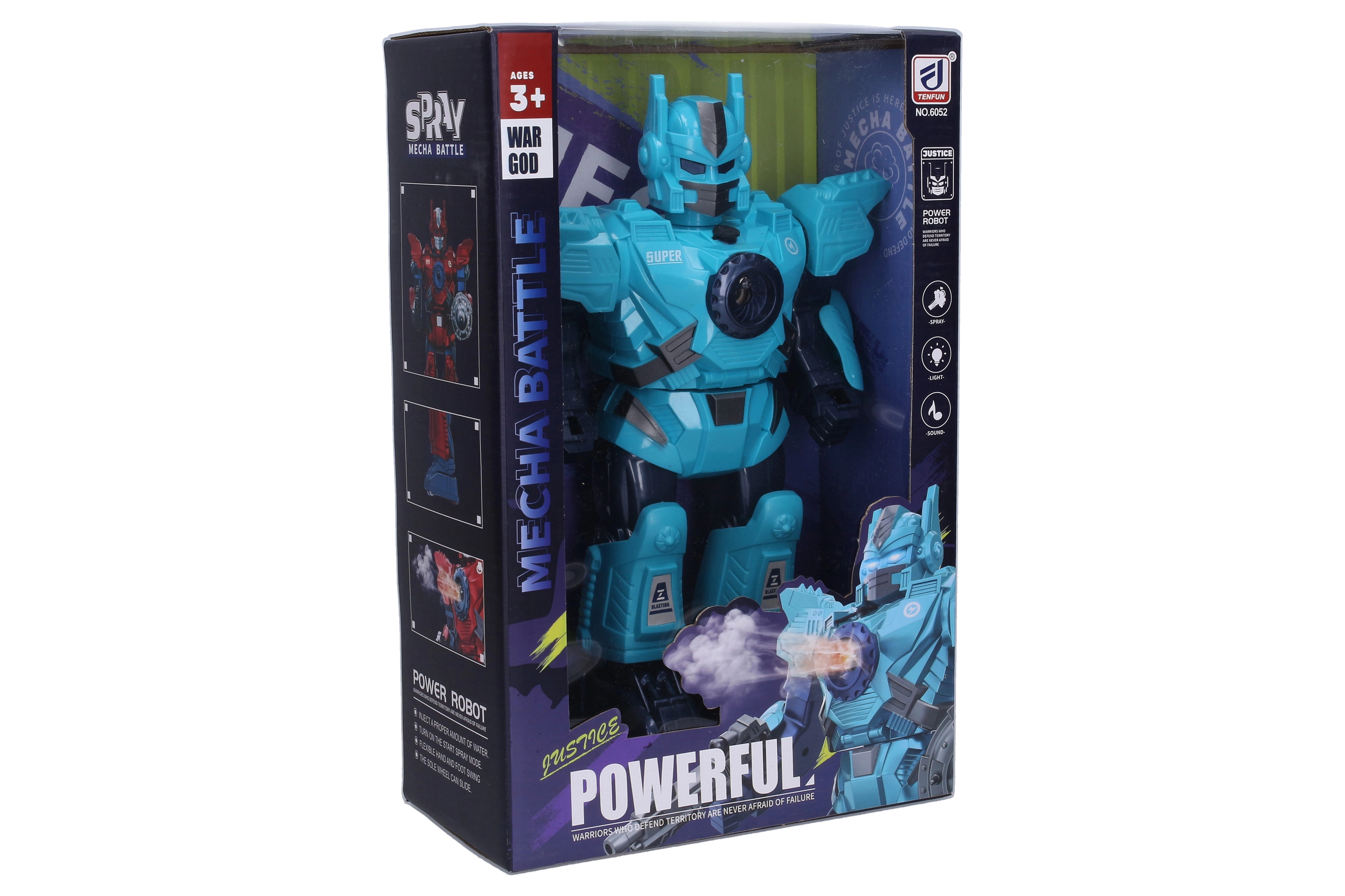 Deze gedetailleerd uitgewerkte MECHA robot biedt een geweldige speelervaring dankzij de combinatie van stoom, licht en geluid. Het waterreservoir bevindt zich in het bovenste deel van de borstkas, waardoor de voorbereiding op actie snel en eenvoudig is. De robuuste afwerking en de opvallende blauwe kleur maken hem tot een onmiskenbaar figuur bij elke missie.
