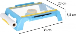 De stabiele kunststof basis met een schuin werkblad en een houder voor de papierrol zorgt voor comfortabele omstandigheden om te tekenen, thuis en onderweg.