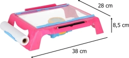 Deze compacte tekentafel met projector projecteert afbeeldingen rechtstreeks op papier, zodat kinderen eenvoudig kunnen overtrekken en stap voor stap leren tekenen. Het overzichtelijke werkblad, de papierrolaanvoer en 4 clips houden het papier stevig op zijn plaats. De verstelbare lens van de projector zorgt voor een scherp beeld en duidelijke lijnen.