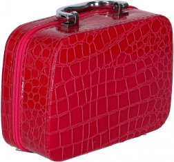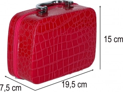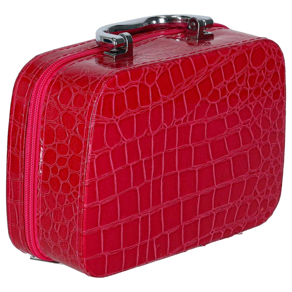 Het lichte koffertje met handvat, dubbele rits en spiegeltje houdt alle accessoires netjes op hun plek. Metalen pootjes zorgen voor stabiliteit op elk oppervlak.