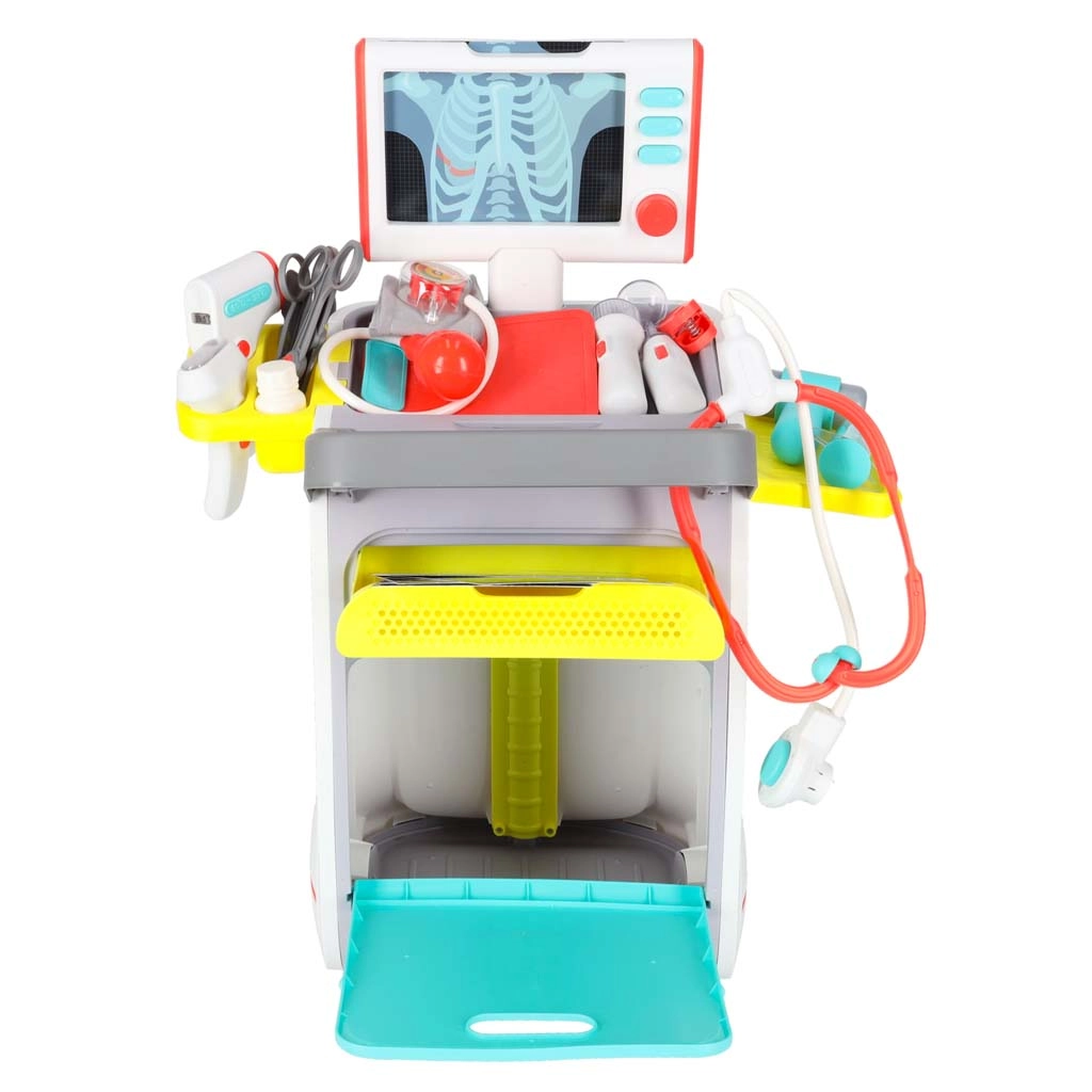 Het hoofdpaneel speelt melodieën af, de instrumenten lichten op en maken geluid. Kinderen oefenen échte medische handelingen in een veilige speelse vorm.