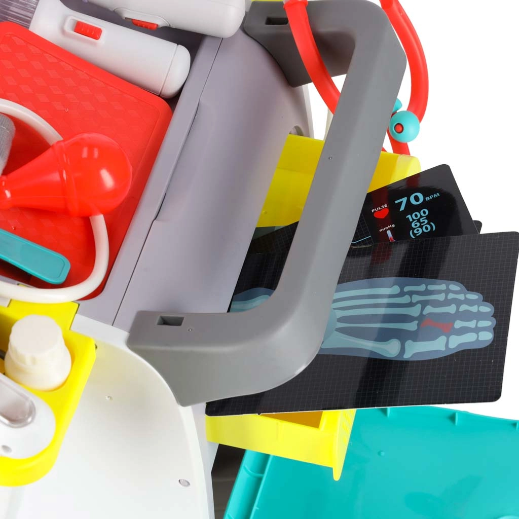 Dit interactieve doktersstation voor kinderen stimuleert creatief rollenspel, fijne motoriek en sociale vaardigheden. Het station speelt melodieën en geluiden af, geselecteerde instrumenten lichten op en reageren, waardoor het onderzoek van de patiënt nog realistischer wordt.
