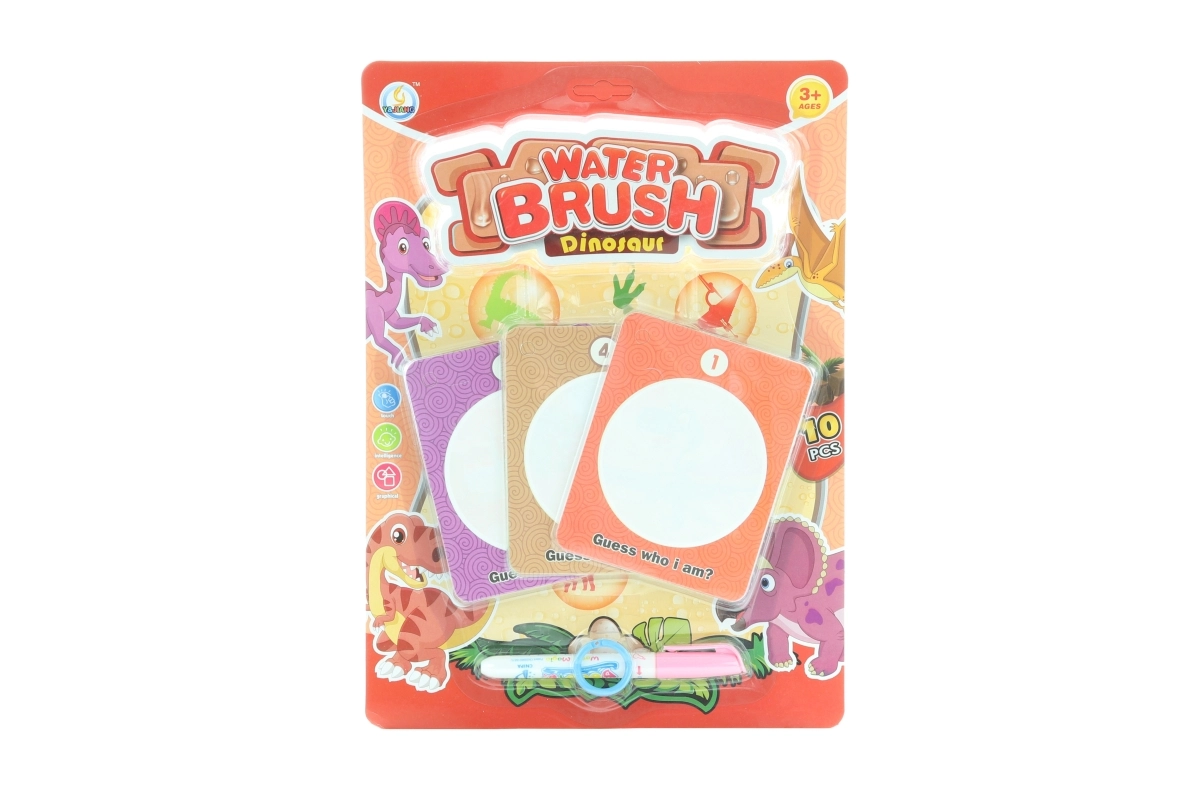 Deze leuke en leerzame set brengt de wereld van dinosaurussen tot leven zonder verf of rommel. In de verpakking vind je 10 kaartjes met afbeeldingen die oplichten in kleur zodra ze met water worden bevochtigd. Na het drogen verdwijnen de kleuren en kun je de kaartjes steeds opnieuw gebruiken.