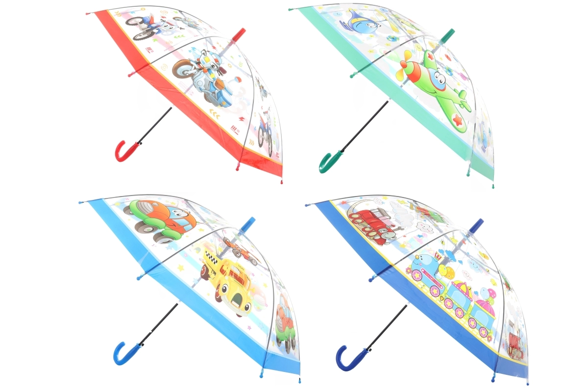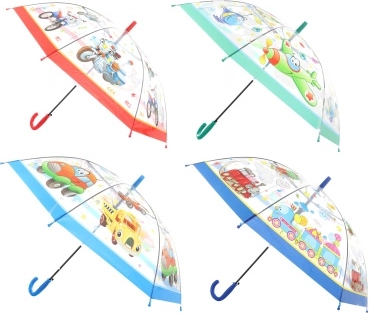 Een praktische en leuke metgezel voor regenachtige dagen – een transparante automatische paraplu met kleurrijke motieven van vervoersmiddelen. Dankzij het transparante materiaal heeft u beter overzicht over de omgeving en loopt u veiliger, terwijl de automatische opening comfortabel gebruik met één hand mogelijk maakt.