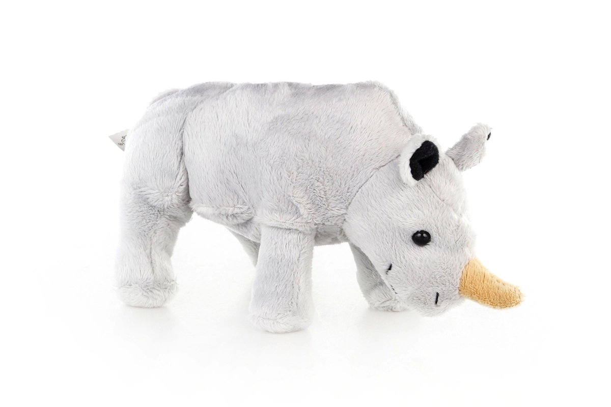 Deze pluchen neushoorn is gemaakt van een fijn en fluweelzacht materiaal dat uitnodigt tot knuffelen. Dankzij het universele formaat van 20 cm past hij gemakkelijk in een kinderhand, kinderwagen of rugzakje. Het neutrale design maakt hem tot een geweldige metgezel voor zowel jongens als meisjes.