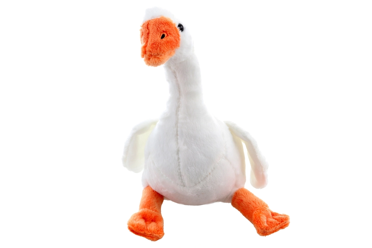 Een schattige pluchen gans van 19 cm is het ideale knuffeltje voor kinderen vanaf 0+. Gemaakt van zacht, fluweelachtig materiaal met fijne stiknaden, met een oranje snavel en pootjes en perfect om mee te knuffelen en voor fantasierijk spel.