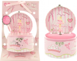 Deze elegante muzikale sieradendoos met ballerina biedt de ideale plek voor het opbergen van ringetjes, armbandjes en andere kleinoden. Bij het openen van het deksel en het opwinden van het sleutelmechanisme danst de ballerina gracieus voor het spiegeltje en klinkt er een aangename melodie. Dankzij de compacte afmetingen past de sieradendoos gemakkelijk op een nachtkastje of plankje in de kinderkamer.