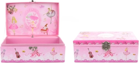 Een betoverende muzikale sieradendoos met ballerina die elke kleine dame zal verrukken. Na het opdraaien van het sleuteltje begint de ballerina binnen te draaien en klinkt er een zachte melodie. Binnenin vind je een praktisch spiegeltje en ruimte voor kleine schatten. Een ideaal cadeau voor kinderen vanaf 3 jaar dat fantasie en plezier in het opbergen van sieraden stimuleert. Muziekmechanisme, dansende ballerina, spiegeltje en voldoende ruimte voor sieraden in één.