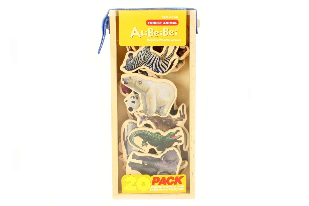 De set wordt geleverd in een stevige houten doos met transparant deksel en een praktisch handvat voor gemakkelijk transport. Ideaal voor thuis, in de kinderopvang of voor onderweg. Kinderen oefenen dierherkenning, woordenschat, sorteren en hand-oogcoördinatie.