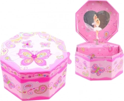 Betoverende muzikale sieradendoos met vlindermotief die de charme van klassieke speeldozen oproept. Na het opdraaien draait de ballerina binnenin rond, dansend op een aangename melodie. Binnenin vind je ook een praktisch spiegeltje, dat het opbergen en controleren van sieraden vergemakkelijkt.
