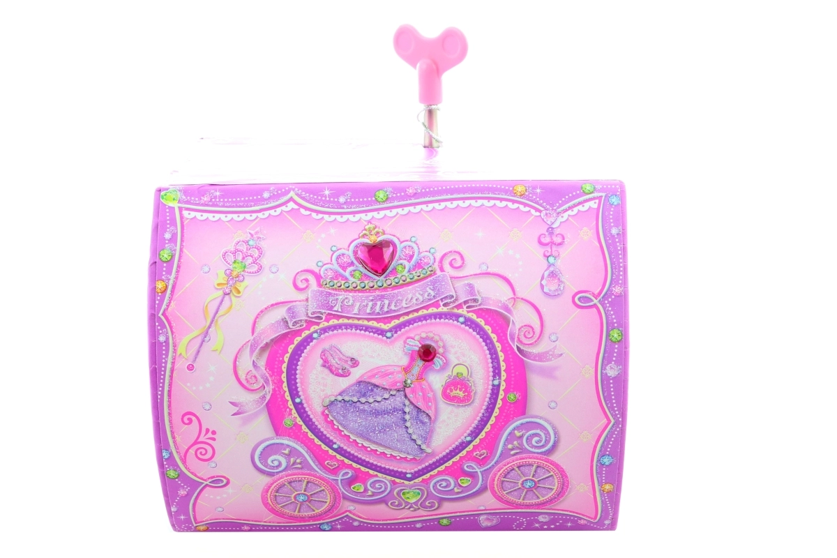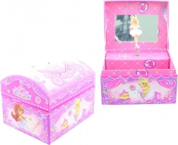 Een betoverende roze speel-sieradendoos voor kleine dametjes met een spiegeltje en een dansende ballerina die, na het opdraaien van het sleuteltje, begint te draaien en een zachte melodie laat klinken. Ideaal voor het bewaren van kinderjuwelen en schatten, met een veilig binnenvak en een lief prinsesselijk uiterlijk.