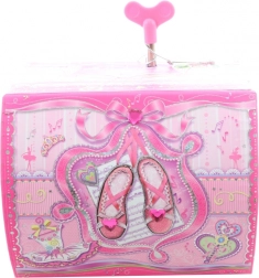 Elegante roze muziekjuwelendoos met balletmotief, perfect voor kleine en grote liefhebbers van dans. Na het opdraaien van het sleuteltje begint de ballerina bij het openen van het deksel te draaien voor het spiegeltje en klinkt er een zachte melodie. De juwelendoos biedt ruimte voor kleine schatten en sieraden, heeft een praktische sluiting en betovert met zijn verfijnd ontwerp. Muziekmechanisme met sleuteltje, draaierende ballerina, spiegeltje binnenin, compacte afmetingen ca. 13 × 10 × 10 cm.