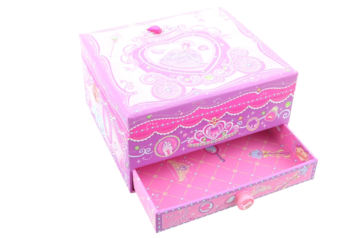 Deze betoverende muzikale sieradendoos met prinsessenmotief zorgt voor een glimlach bij elke opening. Na het opdraaien van het sleuteltje draait de ballerina voor het spiegeltje en klinkt er een zachte melodie die de sprookjessfeer compleet maakt. De sieradendoos biedt een overzichtelijke indeling voor kleine sieraden en geheime schatten.