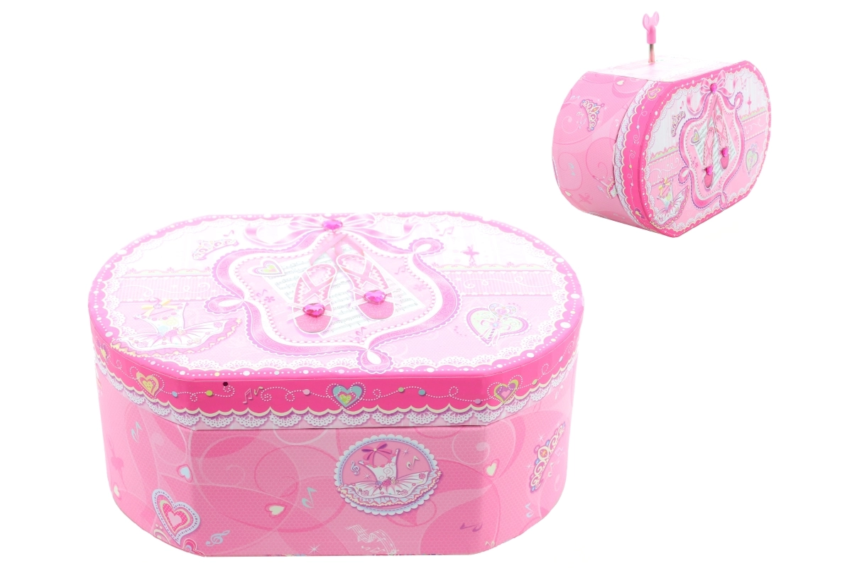 Het interne spiegeltje maakt het passen van sieraden makkelijker, terwijl de ovale vorm en het decor met balletmotieven de kinderkamer of kaptafel fraai sieren. De sieradendoos is ideaal voor ringen, oorbellen en kleine schatten.