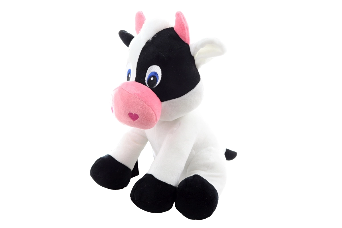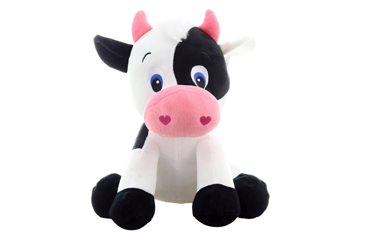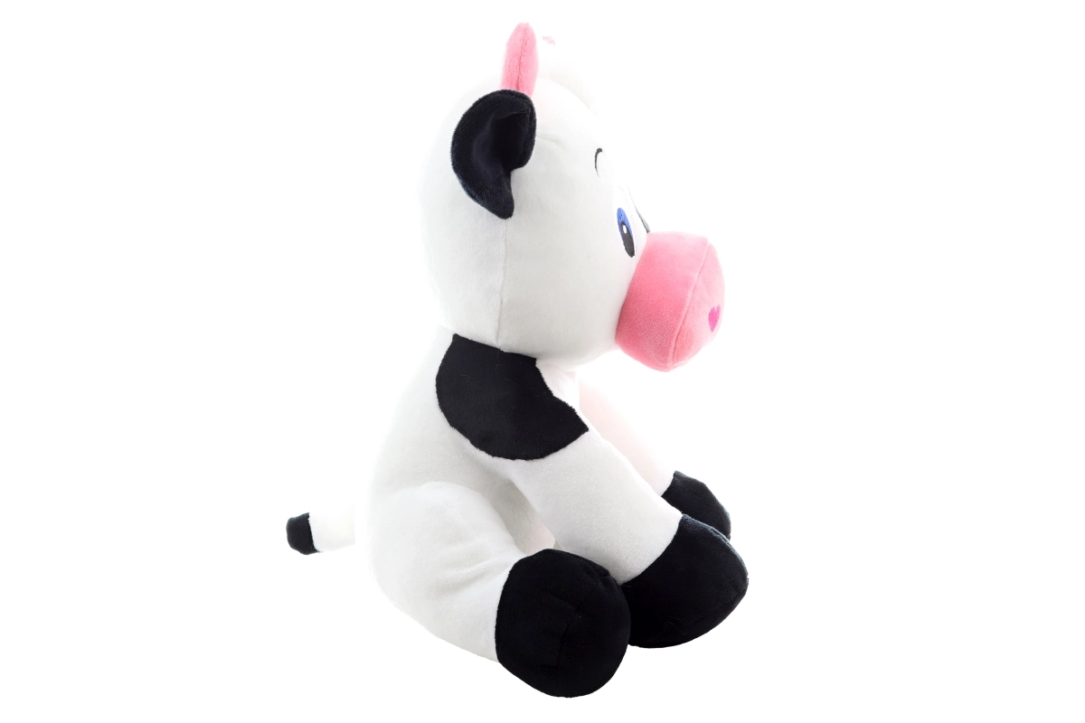 Het design met zwart-witte vlekken, een roze snoetje en hoorns geeft de knuffel een vriendelijke uitstraling. Door de stabiele zittende vorm is ze ook perfect als lieve decoratie in de kinderkamer.