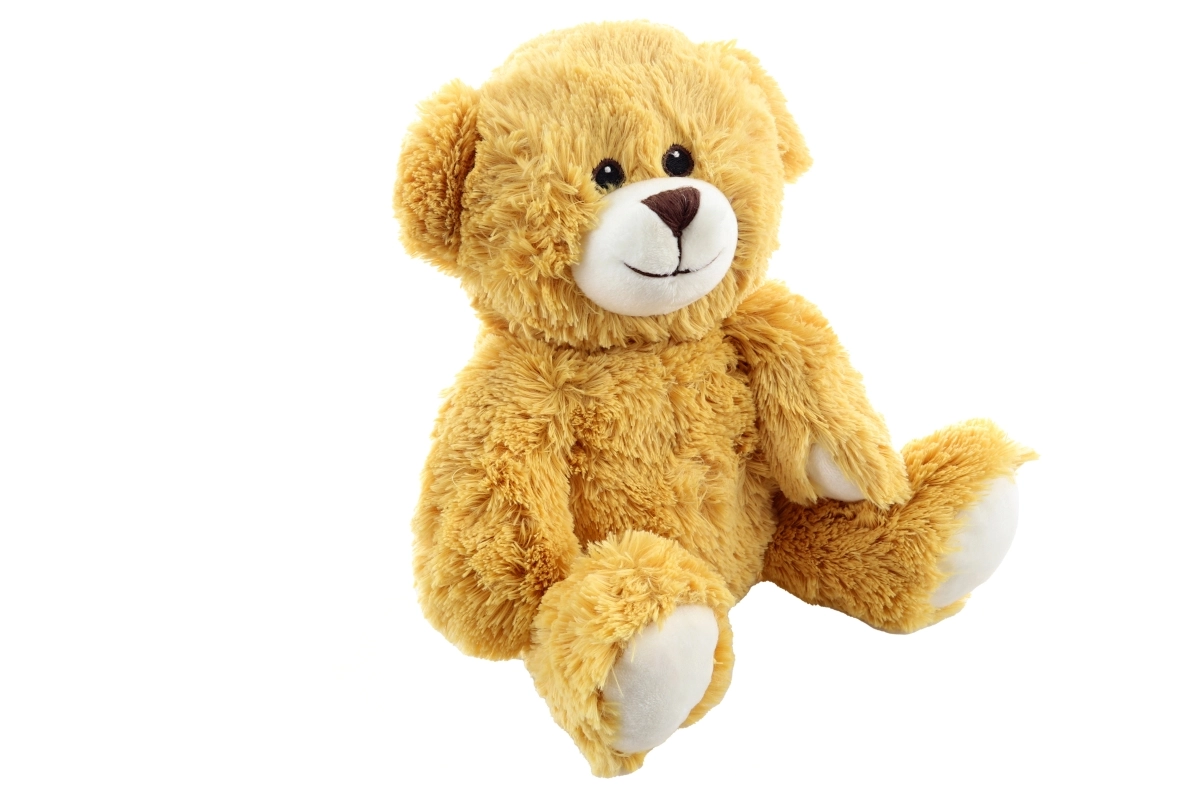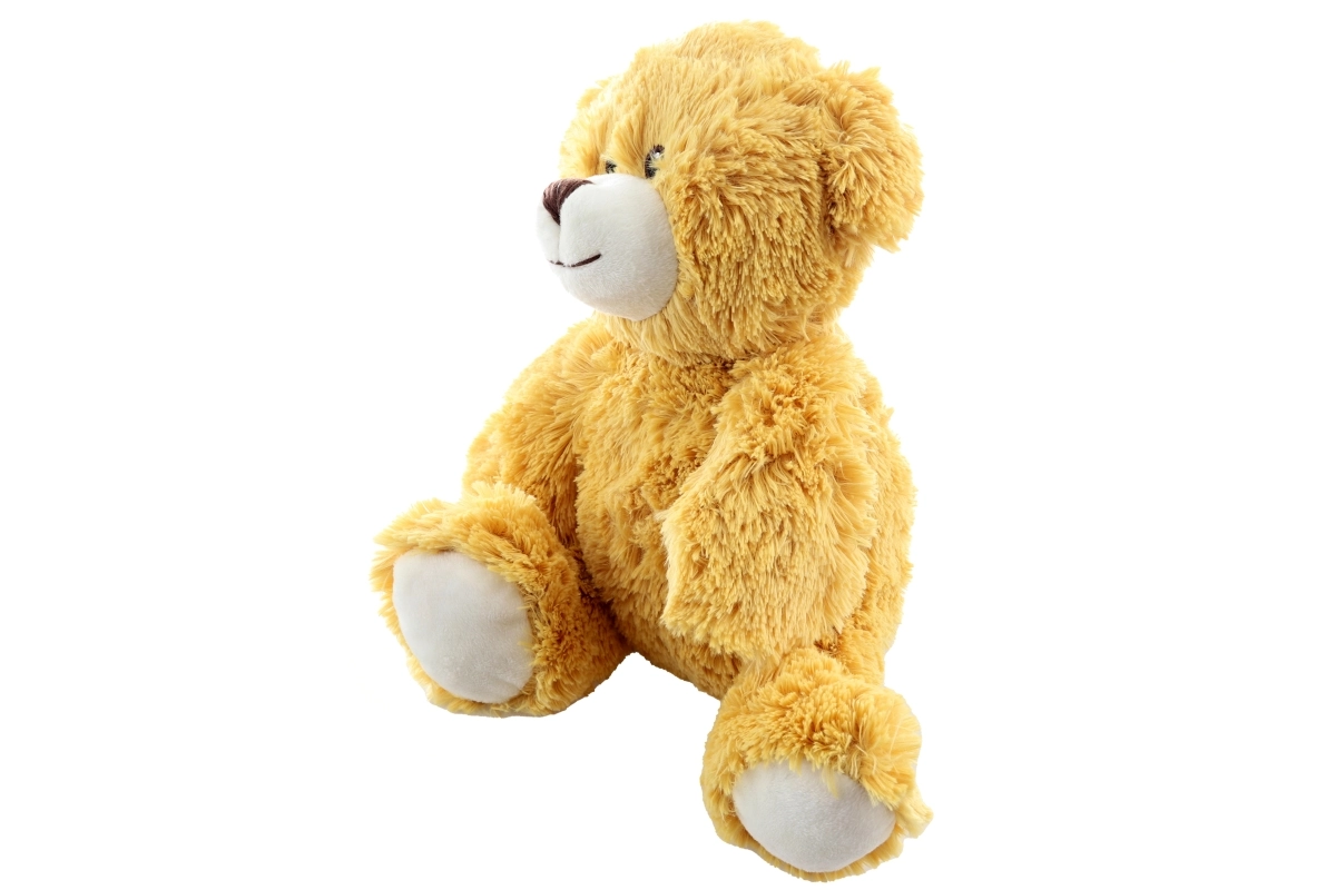 Deze klassieke pluchen teddybeer in een beige-gouden tint heeft een superzachte vacht, een wit snuitje en pootjes en een subtiel geborduurde glimlach. Hij is ontworpen om maximaal comfort en veiligheid te bieden tijdens het knuffelen en in slaap vallen.
